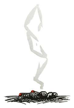 L'encre qui dégouttait de la tête de Quillembois tacha le tapis de la salle à manger, l'escalier, le parquet de la chambre. Le héros démodé n'eut pas un succès de rire, mais d'horreur.