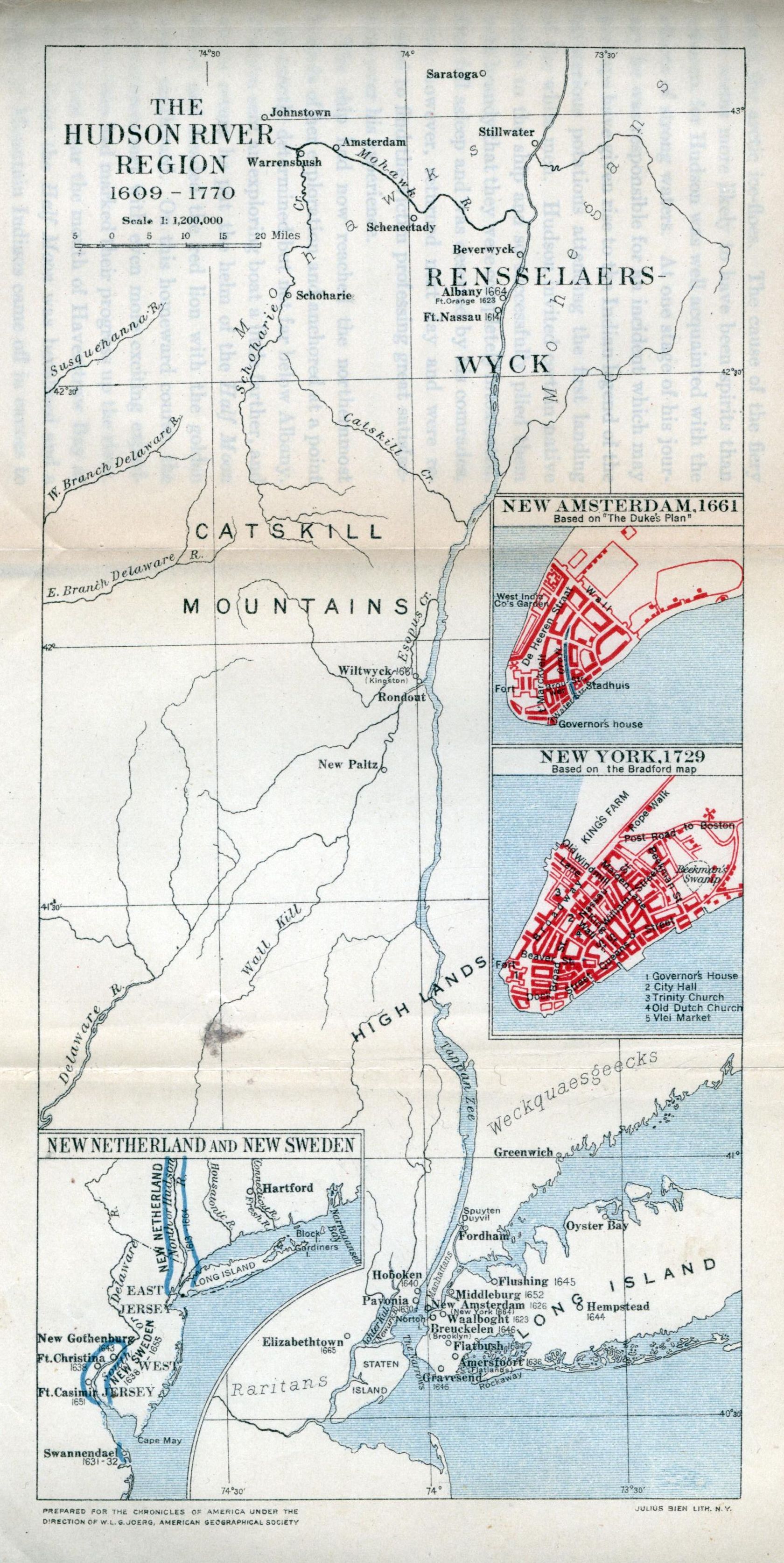 THE HUDSON RIVER REGION, 1609-1770 Map by W. L. G. Joerg, American Geographical Society. |