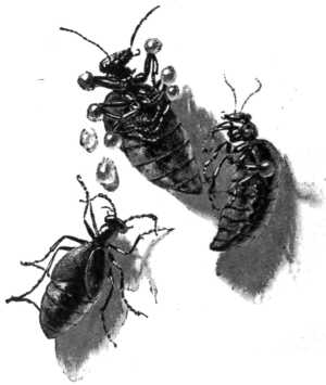 But of what use can such a queer beetle be to himself or any one else—a beetle that is not only without wings, but is so fat and floundering that he can hardly lift his unwieldy body from the ground, and which, upon being surprised, can only "play possum," and exude great drops of oil (?) upon our palm as we examine him?