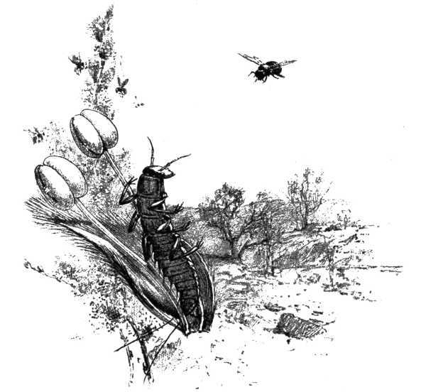 But who would ever think of calling the whizzing[232] harvest-fly a "bug?" Rather will they persist that he is a "locust," which he is not. He should be called the cicada. The "grasshopper" of the fields is the true locust, whose swarms of certain species in the Orient have so often shut out the sun, and whose voracious feeding has laid waste whole square miles of vegetation in a single night.