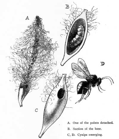 So far as I have observed, however, the woolly species of aphis never acquires wings, nature having in a measure compensated for their absence in the growth of plumy down, which, according to[237] Harris, is so buoyant as to enable the insect to be borne upon the breeze from tree to tree. To this resource he attributes the spread of the wingless apple-lice species. But it would take a stiff breeze thus to waft the body of our plump dweller on the alder, unless, indeed, in his younger days.