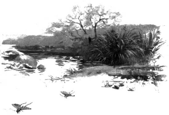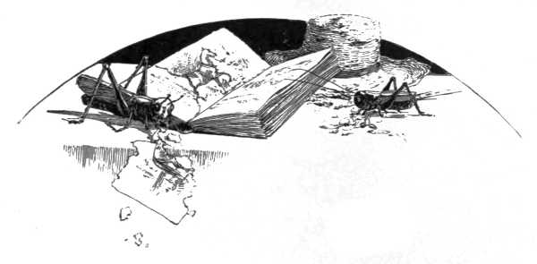 A FEW days ago, while returning from a walk, I chanced to observe a dead grasshopper upon the dirt at the side of the road. Now this incident would not have been of special importance had I not discovered, upon careful post-mortem examination, the very remarkable manner of the insect's death, which recalled a similar surprising episode of several years ago which I had almost forgotten. Upon referring to my note-book of that period, however, I found considerable space devoted to the incident, which greatly astonished me at the time. Inasmuch as it presents in a startling light the wonderful and strange resources by which nature holds in check the too rapid increase of species and maintains the great law of equilibrium among the insect forces, it is well[196] worth recalling in these pages, in the firm belief that my young entomological readers will henceforth look more compassionately and tenderly upon the poor "high-elbowed grig" who is the unfortunate hero of my story. He is familiar to us all, that hovering "rattler" above the hot, dusty road of August, flying up from nowhere beneath our feet in the path, fluttering like a yellow moth, and always disappearing before our eyes when he alights. He is also known as the "Quaker," from his drab suit and bonnet, and his generosity with his "molasses" is proverbial from the days of the Pilgrim settlers. Who would have believed that such a fate as the following lay in store for him.