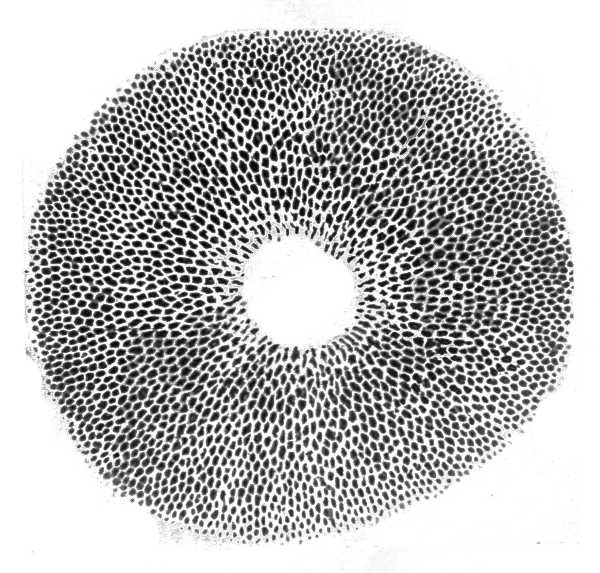 I carried a fragment home, and upon inspecting it by lamp-light, found it white with thready mould, resembling the so-called "dry-rot" of mouldy timber—doubtless the mother of some well-known fungus, or "toadstool," which might have been discerned upon the log the following day had I chanced thither.