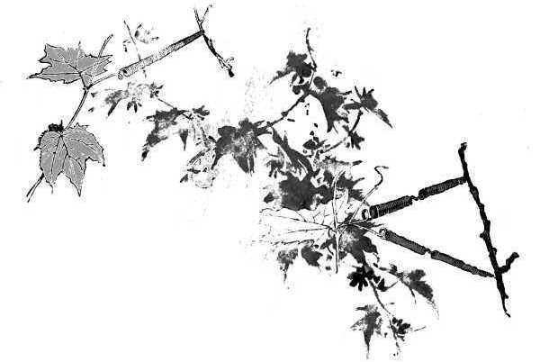 And there our apple hung for weeks, swinging like a pendulum from the slender grape-vine, the coils on duty still keeping their firm grip on the stem, even though all above were straightened by the weight of the burden.