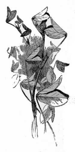 A collection of the natural whims of the clover, both red and white, would make an interesting leaflet in our herbarium. In the hands of the floriculturist who should cultivate these eccentricities most remarkable varieties of clover might[217] ensue. Fancy a clover plant with every leaf a cluster of tiny cups, or of leaves so doubled as to appear like green roses! Here is a chance for our boys and girls to experiment, and without much real labor, too. Both the red and white clovers are perennial—that is, they come up year after year from the same root. A plant which this year favors the "four-leaf" will doubtless follow the same example next year, and the seed from its flowers might also inherit and transmit the same peculiarity,[218] possibly in an exaggerated degree; and careful selection from year to year, keeping the plants in a corner by themselves, might lead to some interesting results, especially if the tendency were further stimulated by enrichment of soil, to which the clover responds vigorously.