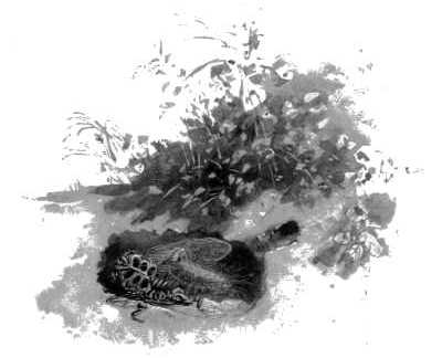 Further than this few have followed the couple. But Professor C. V. Riley, our government entomologist, has unearthed the entire mystery, and eye-witnessed the fate of our cicada, and I am thus enabled to picture the rest of the tragedy. What now follows is very similar to what I described in a previous paper concerning the mud-wasp nest packed with its dead spiders. Our cicada is not dead—more's the pity. The thrust of the sting has only paralyzed the insect, in order that the young of the hornet may be provided with living food. From the opening of the tunnel in the sand our harvest-fly was lugged a distance of about six inches, when the tunnel branched in various directions. Down a branch for about eight inches more, and his journey terminated in a dungeon, where his career was doomed to end. Doubtless each of the other branches held one or two similar prisoners, for the cicada is the favorite prey of this particular wasp. Once arrived at the dungeon, the hornet deposits an egg upon its victim, and leaves him in its charge. In a few days it hatches into a larva with such a voracious appetite that within a week it has devoured the contents of the cicada's shell and reached its full growth. It now incloses itself within a silky cocoon, and after abiding the winter emerges at the[255] brim in the spring a full-fledged hornet, with its mouth watering at the thought of cicadas.