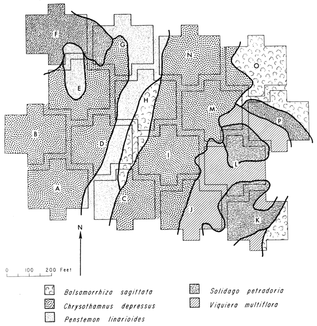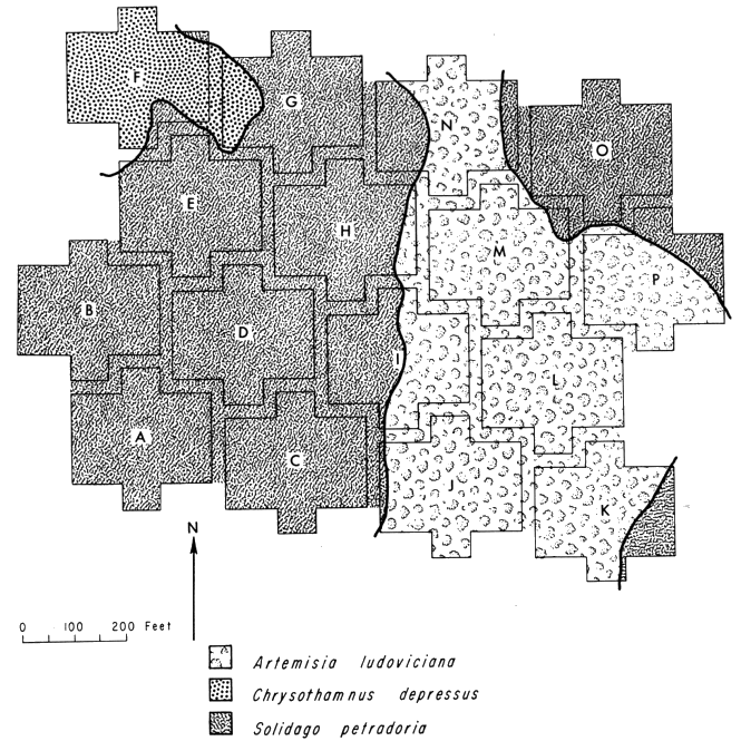 The vegetation of the trapping area was predominantly Artemisia tridentata (big sagebrush), interspersed with a few scattered seedlings of pinyon and juniper. This stand was burned in 1858 (tree-ring date by David Smith) and some charred juniper snags still stood. The deep sandy soil also supported a variety of grasses and a few other small plants. The following species were common in this area: