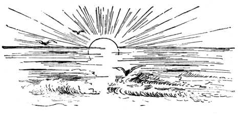 "Dead, maybe. Everybody is dead—everybody—Tom, and the other left behind there in the grated pen! He, too, may be dying. He is faint and weary, and has so little breath after that long tramp! Ah, well! he is close to his mother now, and where else should a man die? He is tired, though—dog tired, and must rest awhile before he heaves anchor." The tide is rising. A dash of salt spray spatters his cheek. The sun comes bravely up from the sea; and, yonder, a ship is coming in. In dreamy abstraction he watches it with half-shut eyes. "How drowsy he is! How came he here? Where is he going? What a coil it is! No matter, he is227 going to sleep now; and by and by he will wake up, and get his bearings. It is all right—all well—he is in her arms! How beautiful she is—the blue-eyed mother! And—hush! hark! she is singing him to sleep!" His mind wanders. He murmurs irrelevantly on—"Poor mother! She is pale and worn! It will grieve her if her boy turns in without a prayer." He tries to fumble to his knees, and fails. Recomposing his limbs, he folds his large hands, childwise, upon his breast, and distinctly and reverently repeats the old, old prayer—