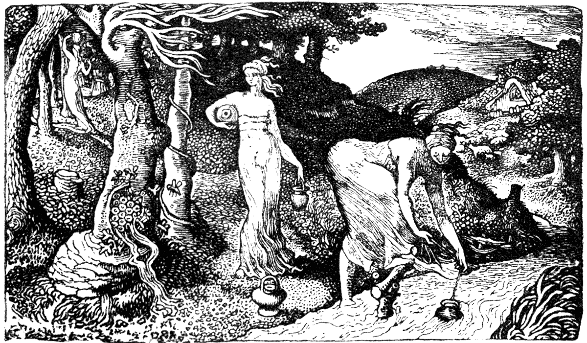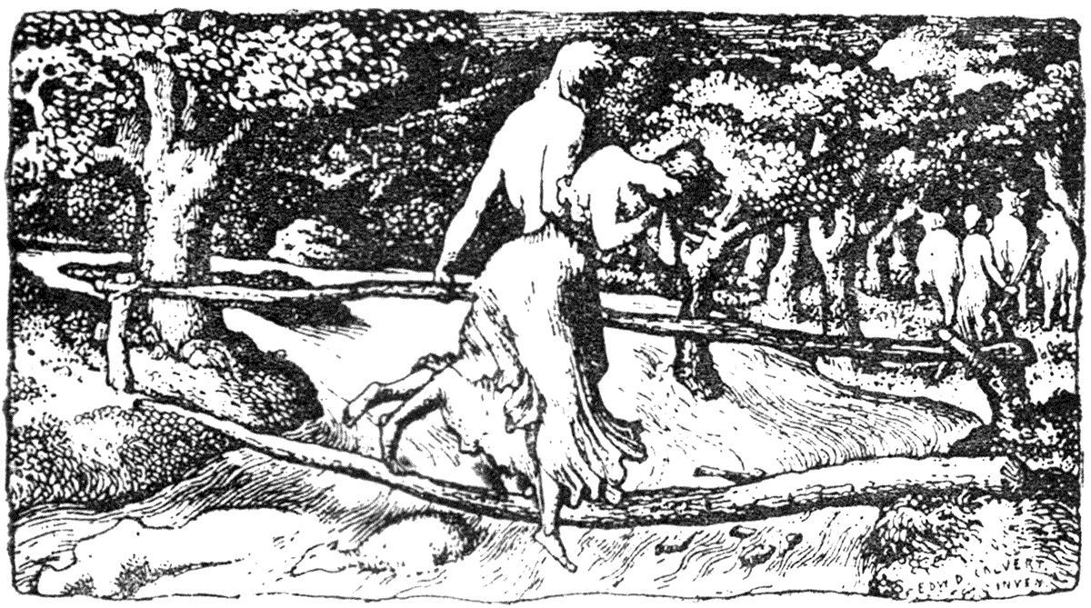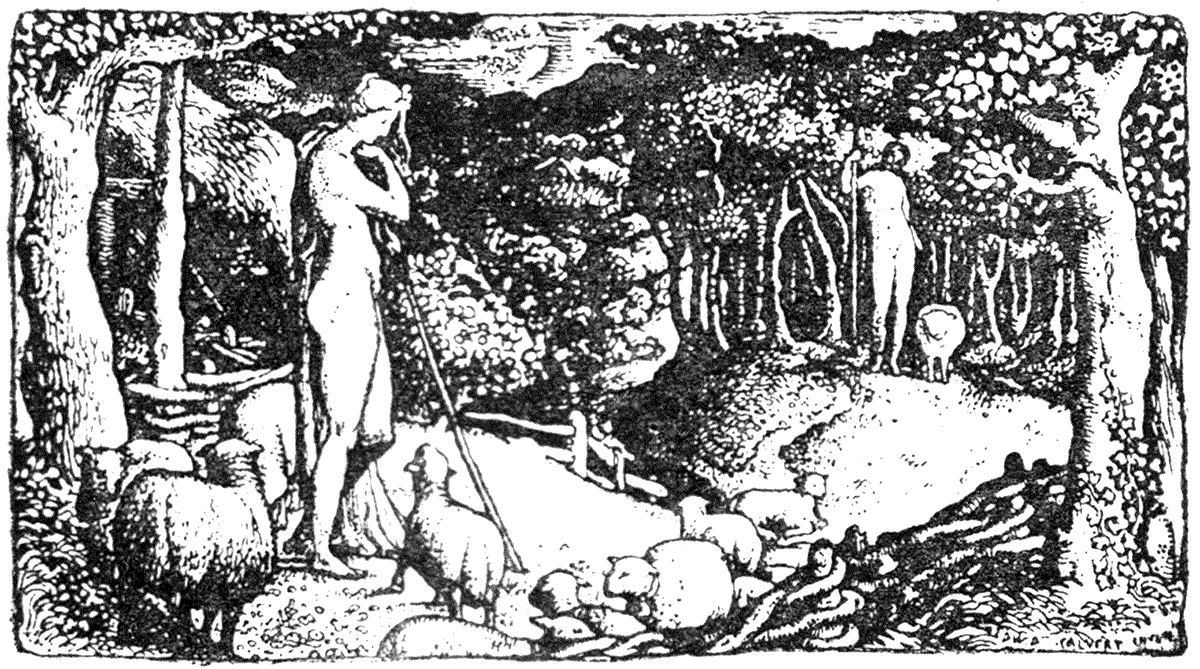 In the selection of the illustrations, I have endeavoured to draw the line between the purely graphic aim, on the one hand, and the ornamental aim on the other—between what I should term the art of pictorial statement and the art of decorative treatment; though there are many cases in which they are combined, as, indeed, in all the most complete book-pictures, they should be. My purpose has been to treat of illustrations which are also book-ornaments, so that purely graphic design, as such, unrelated to the type, and the conditions of the page, does not come within my scope.