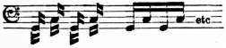 KISSAR, or Gytarah Barbaryeh, the ancient Nubian lyre, still in use in Egypt and Abyssinia. It consists of a body having instead of the traditional tortoiseshell back a shallow, round bowl of wood, covered with a sound-board of sheepskin, in which are three small round sound-holes. The arms, set through the sound-board at points distant about the third of the diameter from the circumference, have the familiar fan shape. Five gut strings, knotted round the bar and raised from the sound-board by means of a bridge tailpiece similar to that in use on the modern guitar, are plucked by means of a plectrum by the right hand for the melody, while the left hand sometimes twangs some of the strings as a soft drone accompaniment.