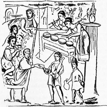 KITCHEN (O.E. cycene; this and other cognate forms, such as Dutch keuken, Ger. Küche, Dan. kökken, Fr. cuisine, are formed from the Low Lat. cucina, Lat. coquina, coquere, to cook), the room or place in a house set apart for cooking, in which the culinary and other domestic utensils are kept. The range or cooking-stove fitted with boiler for hot water, oven and other appliances, is often known as a “kitchener” (see Cookery and Heating). Archaeologists have used the term “kitchen-midden,” i.e. kitchen rubbish-heap (Danish kökken-mödding) for the rubbish heaps of prehistoric man, containing bones, remains of edible shell-fish, implements, &c. (see Shell-heaps). “Midden,” in Middle English mydding, is a Scandinavian word, from myg, muck, filth, and dyng, heap; the latter word gives the English “dung.”
