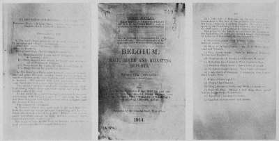 All the books were dated 1914, brought right up to the minute. At the Great General Staff in Berlin I saw these books. I sat in Major von Herwarth's room one night and copied their contents until I was overwhelmed with their wonderful detail. I had wanted to take the books to my hotel. It was impossible. They were regarded by the Germans as being so valuable that they could not be taken from this officer's room. I induced the Staff to let me make photographs of the books, of their covers, pages and maps. And when I was finished the officer said to me, "We were very glad to get these books. We were very thankful. Because they are so much better than any information that our General Staff had about Belgium. In fact they are so good, these English books, that we at once had whole pages copied for the use of our officers in Belgium."