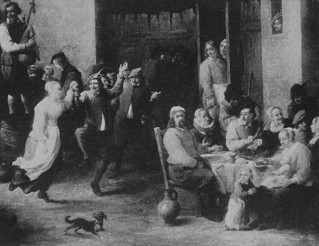 “For my part,” remarked the fourth member of the party, who had been strangely silent during all this discussion, “while I like to learn a little about the history of the old towns I visit, and see the fine things—whether paintings, or town-halls, or lace or tapestry—for which they are famous, what I like the best is to study the people themselves. I mean the live ones, not those who are dead and gone that our husbands are talking about. I love to sit on the sidewalk on pleasant evenings and have dinner and black coffee while watching the people of the town go by. It’s better than a play. And on rainy days there is always some quaint[Pg 7] old-fashioned inn or café where the whole scene looks like a painting by Jordaens or Teniers. The beamed ceiling and the pictures on the walls are grimy with the smoke and steam of countless dinners, the buxom landlady sits in state behind an array of bottles of all sizes and colours and labelled at all prices, her equally plump daughters wait on the tables, the very guests—including ourselves—form a part of the picture. Why, it makes me want to be back there again, just to think of it!”