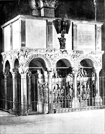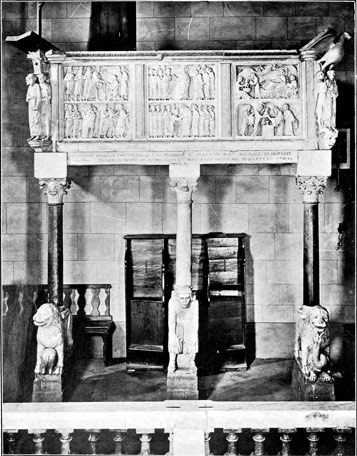 I think if we study these obscure Comacine Masters we shall find that they form a firm, perfect, and consistent link between the old and the new, filling completely that ugly gap in the History of Art. So fully that all the different Italian styles, whose names are legion—being Lombard-Byzantine at Ravenna and Venice, Romanesque at Pisa and Lucca, Lombard-Gothic at Milan, Norman-Saracen in Sicily and the south,—are nothing more than the different developments in differing climates and ages, of the art of one powerful guild of sculptor-builders, who nursed the seed of Roman art on the border-land of the falling Roman Empire, and spread the growth in far-off countries.