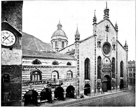 It is strange that Art historians hitherto have made so little of the Comacine Masters. I do not think that Cattaneo mentions them at all. Hope, although divining a universal Masonic Guild, enlarges on all their work as Lombard; Fergusson disposes of them in a single unimportant sentence; and Symonds is not much more diffuse; while Marchese Ricci gives them the credit of the early Lombard work and no more. I was led at length to a closer study of them by the two ponderous tomes on the Maestri Comacini[1] by Professor Merzario, who has got together a huge amount of material from old writers, old deeds, and old stones. But valuable as the material is, Merzario is bewildering in his redundancy, confusing in his arrangement, and not sufficiently clear in his deductions, his viii chief aim being to show how many famous artists came from Lombardy.