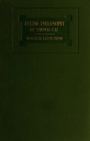 The Project Gutenberg EBook of Feline Philosophy, by Walter Léon Hess This eBook is for the use of anyone anywhere at no cost and with almost no restrictions whatsoever. You may copy it, give it away or re-use it under the terms of the Project Gutenberg License included with this eBook or online at www.gutenberg.org/license Title: Feline Philosophy Author: Walter Léon Hess Release Date: June 9, 2013 [EBook #42897] Language: English Character set encoding: UTF-8 *** START OF THIS PROJECT GUTENBERG EBOOK FELINE PHILOSOPHY *** Produced by The Online Distributed Proofreading Team at http://www.pgdp.net (This file was produced from images generously made available by The Internet Archive.)