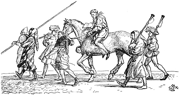 All those in authority were not brutes; it is even recorded of a Suffolk bailiff that finding on his recovery from illness that his deputy had been guilty of extortion, he returned the money and dismissed the deputy. But the reports from Yorkshire in 1275 were fairly typical; the bailiff of the Earl of Lincoln had done ‘many acts of oppression, rapine, and injuries beyond belief’; ‘many other things, beyond number and astonishing,’ were related of the sub-sheriff, and ‘innumerable devilish acts of oppression’ were accredited to the steward of Earl Warenne. The earl himself was a man of violence, who had turned about a fifth part of the county of Sussex into a game preserve, and maintained armed keepers to prevent the peasants from driving the deer out of their corn. The story is well known how, when King Edward’s commissioners demanded by what title he held his lands, he[Pg 139] produced a rusty sword and said ‘by this my ancestors won their lands and by this I will defend them.’ Like most well-known stories this is apocryphal, and in any case a distaff would have been more appropriate, as his lands had descended through an heiress, but that he would have been willing to protect his lands with the sword is likely enough. One of his descendants, the Earl of Surrey of the time of Henry VIII. seems to have inherited some of his lawlessness, as he was charged with ‘a lewde and unsemely manner of walking in the night abowght the stretes and breaking wyth stonebowes (i.e. catapults) of certeyne wyndowes.’ It does not appear that he wanted ‘Votes for Peers’ and, in fact, he admitted that he ‘hadde verye evyll done therein,’ and was sent to the Fleet prison.
