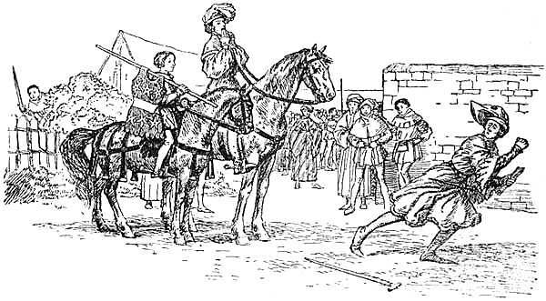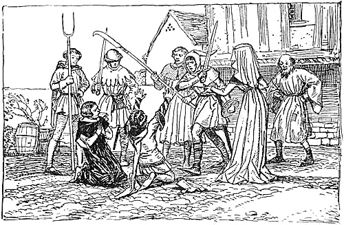 It sometimes happened that these imperious gentry reaped the reward of their own lawlessness and goaded their oppressed tenants to active rebellion. As early as the twelfth century the sheriff of Hants is found grimly entering in his accounts money spent on doing justice on the peasants who burned their lord. At Faccombe in the same county, in 1426,[Pg 152] John Punchardon, lord of the manor, was dragged from his bed one Sunday night, carried out into the fields, and there done to death. In this case there was probably some personal feeling in the matter, as the murderers included five members of the family of Cosyn, whose ancestors had formerly held the manor, but who had now come down to the position of labourers. A case in which the motive of rebellion was more clearly resentment to oppression occurred at Preston in Sussex, in 1280, when the villeins of Simon de Pierpoint set fire to his manor-house, and with drawn knives and flourished axes compelled him to swear upon the Gospels that he would demand no services from them without their consent, and would take no action against them for their violence. At the same time they destroyed their lord’s tabard, so beat his charger that it could never be used again and slew his ‘gentle falcon,’ thus wreaking their wrath on the outward signs of his nobility. Such revolts were much more common in[Pg 153] towns; for instance, at Lynne, in 1313, when Robert Muhaut tried to exercise his authority in a new direction, a crowd of tradesmen, under the leadership of the prior, assaulted his house, dragged him out and made him stand on a stall in the market-place and swear on the Host that he would not interfere with the town officers. At Bristol, also about the same time, the burgesses quarrelled with the castellan, barricaded the streets and erected an embattled wall from behind which they shot into the castle, and at Oxford the watchmen were on several occasions shot at with arrows:—I have known, in more recent times, a casual shot at a proctor with a lump of sugar have more disastrous effects—to the shooter.