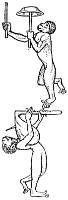 Knives were not infrequently responsible for deaths without any evil intent on the part of their owners. In quite a large number of cases when boys were playing together a knife would fall out of its sheath and inflict a mortal wound. And then, if the owner were over twelve, he would have, theoretically, to go to prison and[Pg 93] stay there till he received a formal pardon from the king for accidental manslaughter. I say ‘theoretically’ because in practice the culprit usually ‘fled,’ which, I suspect, meant that he went round the corner while the village constable carefully looked in the wrong place for him. An unusual incident connected with a knife occurred in Dorset in 1280, when a girl, clearing the table after dinner, picked up the tablecloth with a knife inside, and as she went out of the room tripped and fell so that the knife stuck into her. It was about the same date that a Suffolk peasant, William le Keu, flung a knife against the wall of his house and it bounded off and killed his infant daughter, lying on her mother’s lap in front of the fire. Why he should have thrown his knife at the wall does not appear, but people were always throwing things about and hitting inoffensive passers-by. For instance, a man would fling a rake or a flail at some chicken and hit his own child. Children, in fact, had an unhappy knack of coming round the corner with disastrous[Pg 94] results to themselves, especially when their elders were playing quoits or pennystone down the village street. One of the most curious cases of what we may call an indirect accident was when two small boys went into an orchard to get apples; one of them threw a stone up into a tree, but instead of bringing down an apple it hit a stone that some one had thrown up long before, and this fell on his cousin’s head and killed him. Another case of the unforeseen happened in Nottinghamshire in the thirteenth century, when Richard Palmer was climbing a tree in a churchyard to take a crow’s nest. He was standing on a bough when suddenly it broke; but the result was not what might have been expected, for Richard got his arms round a branch and after hanging for a long time came down safely, but the broken bough fell on the head of a man standing down below, and ‘the dog it was that died.’