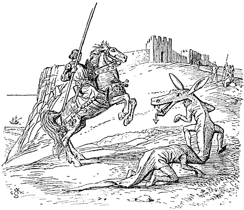 The ostrich does not often occur under that name, but its egg was often made into a cup, under the name of a griffon’s egg or ‘grype’s ey.’ Edward III. had more than one ‘oef de greffon,’ and Henry IV. had half-a-dozen ‘gryppesheys,’ but possibly by this time the term was only conventional and the true origin of the egg was known, as one of these[Pg 175] ‘gryppesheys’ was mounted on ‘two white ostriches.’ The griffin, half eagle and half lion, was a very popular mediæval beast; that no specimen is ever recorded to have been taken round on show may have been due to the fact that this beast ‘so much disdaineth vassalrey and subjection that he will never be surprised alive.’ The appearance amongst the jewels of Richard II. of an almsdish supported by two griffons suggests an analogy with its modern relation the Jubjub, of which it is said that ‘In charity meetings it stands at the door, And collects though it does not subscribe.’ If doubt is to be thrown on examples of the griffon’s eggs, still more dubitable is the ‘drinking vessel made of the horn of a griffon, mounted in copper gilt,’ which belonged to Edward III. This may well rank with a relic preserved in the Cathedral Priory of Rochester,—‘the rod of Moses which budded,’—in view of the fact that it was Aaron’s rod which budded and that a griffon has no horns.