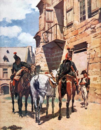 M. Phillippe Burty, his contemporary and his first biographer, explains to us that, while at Cogniet’s, young Meissonier did not work like the other students, from casts or nude models: “He passed his days in an enclosure adjoining the [Pg 23]studio, where the master was engaged upon his ceiling painting for the Louvre, the Expedition into Egypt, and hired by the day soldiers in republican uniform, dragoons, artillerymen and their horses.” In the midst of this resurrection of a past that was still quite recent, in the very presence of the stage setting, the reproduction of the Napoleonic Epic, he suddenly conceived of it as the greatest of all subjects that might tempt his accurate artist fingers. It must have seemed to him, later on, that he himself had witnessed its close.