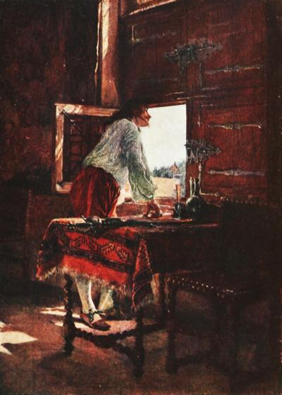In The Etcher, just as in The Man at the Window—two of his most celebrated pictures (the former brought 272,000 francs, even during Meissonier’s lifetime)—the interest of the principal—and only—figure is heightened and singularly[Pg 57] beautified by a delicate effect of light, forming an aureole, in the very centre of the picture, respectively around the face of the worker and of the dreamer.