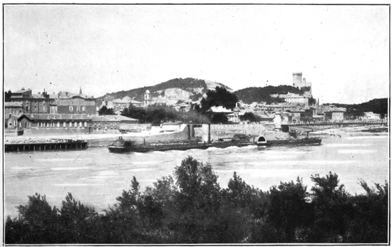 If one has never seen photographs of Tarascon it will be a surprise, as it is surely a pleasure, to note how faithfully the artists who illustrated Daudet's books have reproduced in their charming little vignettes the chief features of the actual town. There to the south of the bridge is the tiny quay from which we are to suppose the Tootoopumpum sailed away with the flower of Tarascon's aristocracy on that ill-starred expedition to the South Seas. Daudet is careful to preserve some slight respect for the truth by explaining that the vessel was of shallow draft; but, even so, the Rhone is here not navigable to ocean-going steamers.