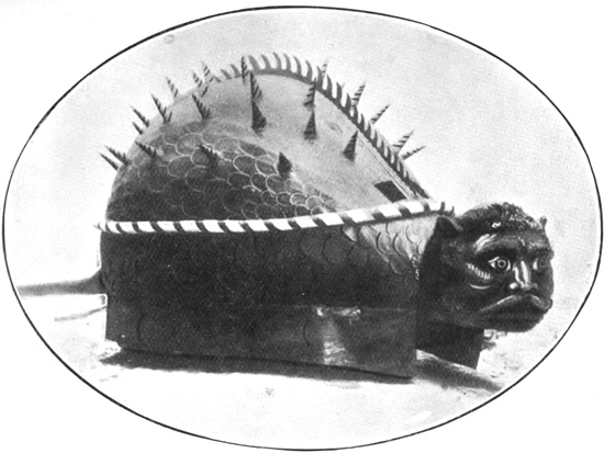 Daudet's light sketch of the Tarasque may be supplemented by a more circumstantial account of the strange ceremony from a writer on old customs (William S. Walsh), who informs us that "the famous Miracle Play of 'Sainte Marthe et la Tarasque,' instituted, it was said, by King Réné in 1400, was one of the last Provençal coronlas to disappear, as in its day it was one of the most popular. Even after the Mystery Play was itself abandoned, a remnant of it lingered on until the middle of the nineteenth century in the annual procession of La Tarasque, celebrated on July 29th, not only at Tarascon, but also at Beaucaire. The main feature was the huge figure of a dragon, made of wood and canvas, eight feet long, three feet high, and four feet broad in the middle. The head was small, there was no neck, the body, which was covered with scales, 191 was shaped like an enormous egg, and at the nether extremity was a heavy beam of wood for a tail. Sixteen mummers, gaily caparisoned and known as the Knights of la Tarasque were among its attendants. Eight of the knights concealed themselves within the body to represent those who had been devoured, and furnished the motive power, besides lashing the tail to right and left, at imminent risk to the legs of the spectators. The other eight formed the escort, and were followed by drummers and fifers and a long procession of clergy and laity. The dragon was conducted by a girl in white and blue, the leading string being her girdle of blue silk. When the dragon was especially unruly and frolicsome she dashed holy water over it. A continuous rattle of torpedoes and musketry was kept up by those who followed in the dragon's train."