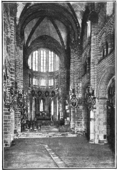 Suffice it to say that you will first be taken to the Church, which is now, and likely to be for many years, in the hands of the restorers. Only four bays of the seven that went to the making of the great Norman nave remain, and these have had to be much restored; but here it is a pleasure to record that the restoration has been carried out with perfect taste, so that the latter-day visitor has an excellent idea of the appearance of the Abbey and its dependent buildings as these 249 were in the heyday of Mont St. Michel's prosperity.