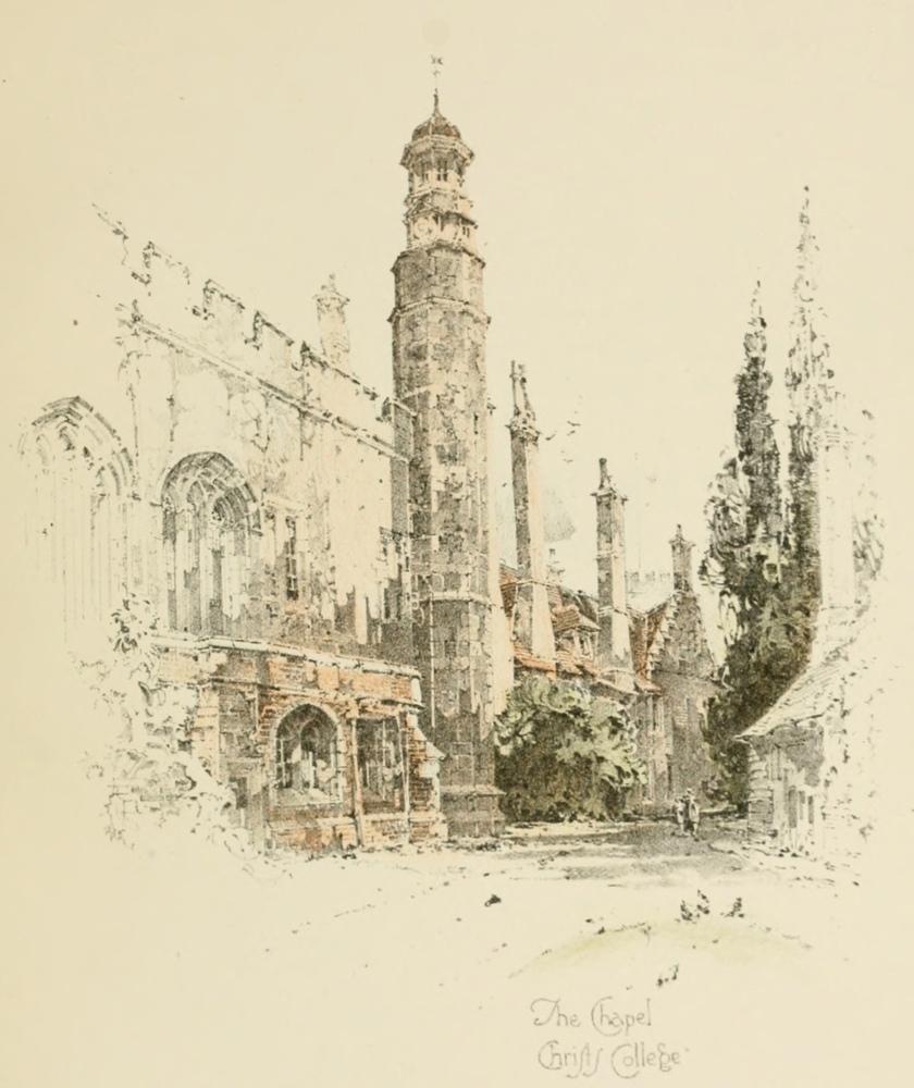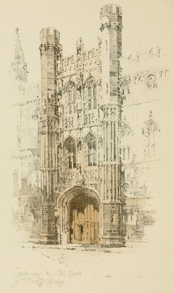 Some time ago I undertook to prepare, for “the Mediæval Towns Series” of my Publisher, a work on the Story of the Town and University of Cambridge. Arrangements were made with Mr. Herbert Railton for its pictorial illustration. It had been intended in the first instance, that the artist’s pen and ink sketches should have been reproduced by the ordinary processes used in modern book illustration. But the poetic glamour of such a place as Cambridge and its genius loci did not allow the enthusiasm of the artist to remain satisfied with such drawings only as might be readily reproduced by the ordinary processes. In addition to many sketches in black and white, suitable for reproduction in the body of the text in illustration of interesting bits of architectural detail, or of quaint grouping, Mr. Railton has also drawn a series of large-sized pencil-pictures of the principal College buildings. These drawings are so beautiful, so full of delicacy and tenderness and yet so firm and effective in their treatment of light and shade, and show so much sympathy for the old buildings and all their picturesque charm, that the Publisher at once felt that they must not be treated as ordinary book illustrations. The artist had produced pictures worthy to be classed with the best work of Samuel Prout. It became the duty of the Publisher to treat them with corresponding respect. The method of auto-lithography has accordingly been adopted, by which the plates are an absolute reproduction in size and tint of the pencil drawings, and the artist’s work goes straight to the reader without any mechanical intervention. A new feature has been added by which the colour stones have been made by Mrs. Railton acting in collaboration with her husband. This process of reproduction necessarily involved a change in the proposed format of the book. It was determined, therefore, to issue in the first instance an edition de luxe of “The Story of Cambridge,” on specially prepared paper and in large quarto size. I have readily consented to such a course, for although I may seem, by the more imposing form of a large Library Edition, to be guilty of some presumption in placing my Historical Sketch in competition with such histories as those of Mr. Mullinger in the “Epochs of History Series,” or of my friend, Mr. T. D. Atkinson, in “Cambridge Described”—the larger books of Mr. J. W. Clark on the architectural history of Cambridge, and of Mr. Mullinger on the general history of the University are already classics to which humbler writers on Cambridge can only look as to final authorities—I can only hope that my readers will recognise that my presumption is only apparent, and meanwhile I rest confident that even the historical critic will have little care for the inadequacy of my prose rendering of “The Story of Cambridge,” absorbed as he must be by his delight in the beauty of Mr. Railton’s drawings. In any case, I shall be entirely satisfied if only my descriptive sketch is found adequate for the help of the general reader in appreciating the story of which the artist has been able to give so poetic an interpretation.