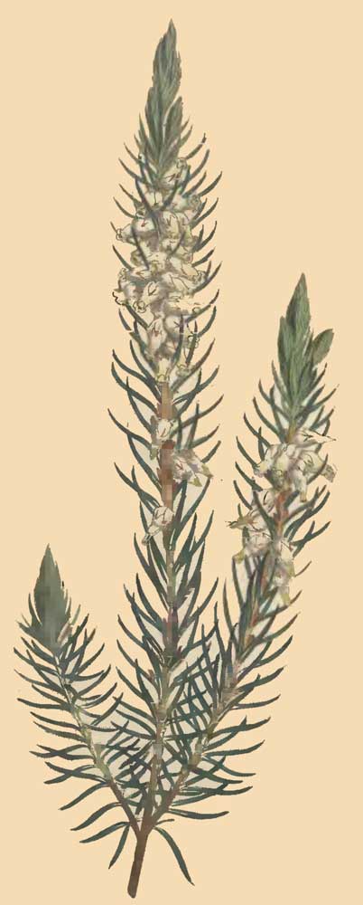 ERICA albens antheris muticis inclusis, corollis ovatis oblongis acutis, foliis ternis, racemis secundis. Linn. Syst. Vegetab. Murr. ed. 14. p. 367. Mant. 233.