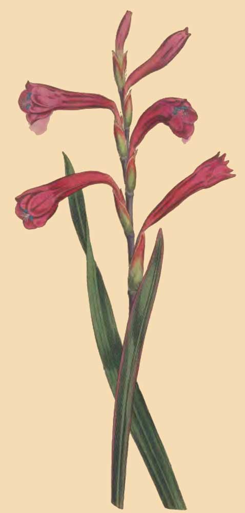 This very rare species is perfectly distinct from the Meriana, of more humble growth, the flowering stem seldom rising to more than a foot in height, and producing from four to six flowers, which are proportionably longer, more closed, and of a deeper red colour than those of Meriana.