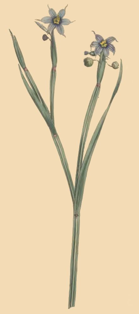 In a former Number of this Work, we gave a figure of the large variety of Sisyrinch. Bermud. of Linn. regarding it as a distinct species, and naming it iridioides, conformably to Dillenius's specific description; we regret now that we did not continue to it the name of Bermudiana (it being the true Bermudas plant) and which cannot with propriety be applied to the present species, a native of Virginia, far more diminutive, with flowers much smaller, of a paler blue colour, a much hardier plant also, and of more ready growth; it is indeed a truly hardy perennial, adapted to the open border, in which it will grow readily, and produce abundance of flowering stems in June and July; the flowers expand to the sun, and are followed by numerous seed-vessels which ripen their seeds, by which the plant may be increased, or by parting its roots in the autumn. Its stalk affords an excellent example of the caulis anceps. We readily embrace the opportunity here afforded us of correcting an error in regard to the hardiness of the Sisyrinch. iridioides, which we were led into partly by Miller's account, and partly from observing the plant to survive a mild winter in the open ground; we have since found that it is a tender plant, and to be ranked with those of the greenhouse; an additional proof of its being a distinct species from the one here figured, which has long[1] been cultivated in our gardens.