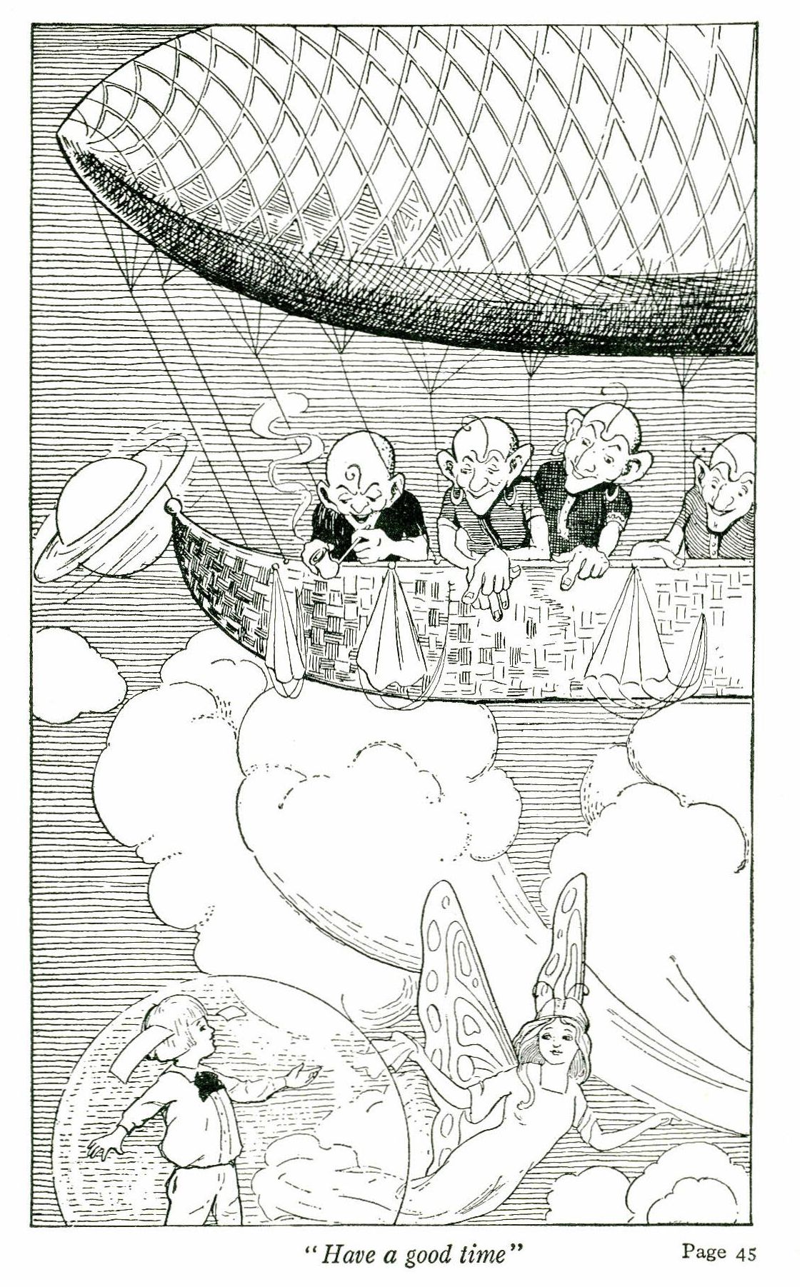 In it were four strange looking persons. Bobbie thought they must be sky pirates until the fairy introduced them as the four Winds! He wondered how such dreadful looking fathers could have such nice little sons.