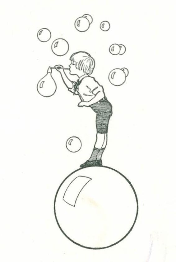 One day Bobbie and Betty and Billy were out in the garden blowing bubbles. They all blew bubbles, big ones and little ones, till evening came and it was almost time for tea. Then Billy said, “I can blow the biggest bubble anybody's blown to-day,” and blew a bubble as big as an apple.