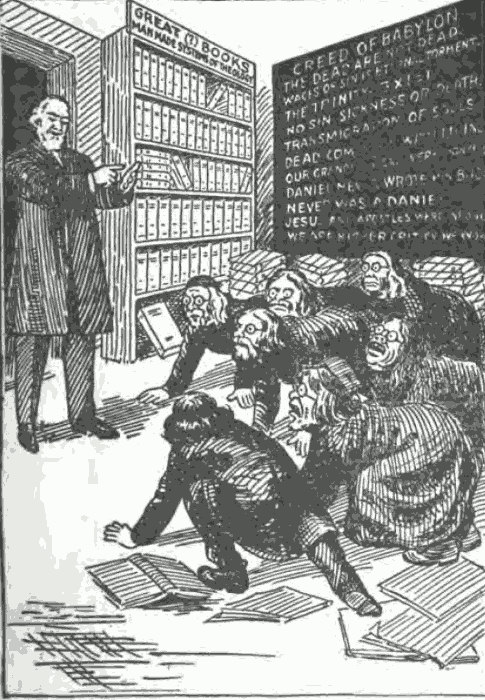Pastor Russell was a man of unusual modesty. Great men usually are modest. The examination of the contents of this book will disclose the fact that it deals with Revelation and Ezekiel; that the Lord long ago caused to be recorded therein, in symbolic language, a history of the Church, particularly the closing earthly experiences thereof; that therein He set forth that He would uncover the frauds, deceptions and blasphemous teachings and practices of the church nominal—both Catholic and Protestant; that in the last days He would then make bare the unholy alliance between the unrighteous ecclesiastical systems and the corrupt political elements of the earth, which religious systems have prospered and grown fat in the name of Christ; that the Lord pronounces His indignation and wrath against all such Babylonish systems and marks their utter destruction in a Time of Trouble such as the world has never known and will never again know; and that the earthly creature made prominent therein above all others is the messenger of the Laodicean Church—“that wise and faithful servant” of the Lord—CHARLES TAZE RUSSELL. In view of the facts stated, is it at all surprising that the Lord spared him the publication of the Seventh Volume?