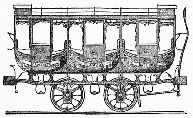 The stagecoach was established in England as a public conveyance early in the sixteenth century, and soon regular routes were developed throughout the country. Now for the first time a closed vehicle afforded travelers comparative comfort during their journey, and in the stagecoach with its definite schedule may be seen the early prototype of the modern passenger railroad. For three centuries the stagecoach slowly developed, and its popularity carried it to the continent and later to America. But by a radical invention transportation was suddenly transformed.