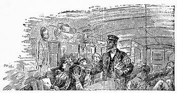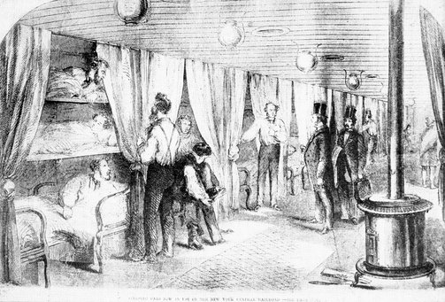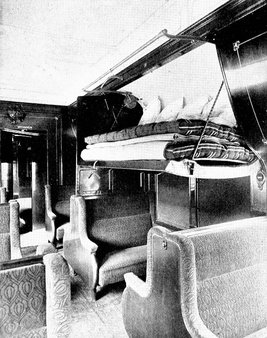 Years ago the wearied traveler wrapped his great coat about him for his midnight journey. Later a few "sleeping" cars of primitive construction provided sheets and blankets which were stored in a cupboard in the end of the car. As these were washed only at irregular intervals, it was a lucky passenger who found clean linen for his bed, and if he did not make up the bed himself, it was the brakeman who provided this domestic service. Naturally no one thought of undressing for the night, and when the Pullman car was first introduced it was necessary to print on the back of the tickets and in the employees' rules book the warning that passengers must not retire with their boots on.