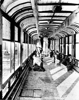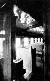 All the previous night a steam engine had created power to charge the cells. In the roof of the car were twelve small Edison incandescent lights with bamboo filaments. The light was uneven; it was "garish," but at the turn of a switch its rays filled the car. With pardonable enthusiasm the London Times stated that "the car on the return journey in the evening was kept lighted the whole of the distance from Brighton to Victoria."