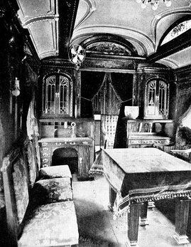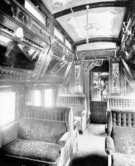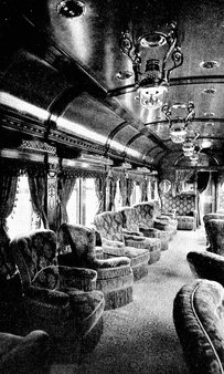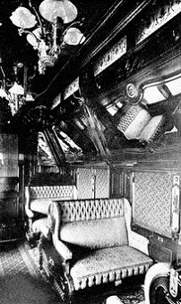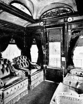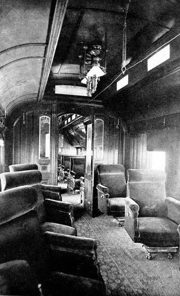 Bedroom and observation section of a costly private car. This car represents the apotheosis of railroad travel