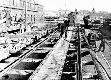 As early as 1804 Richard Trevithick had experimented with a steam locomotive, and in the ten years following other daring spirits endeavored to devise a practical application of the steam engine to the railway problem. But in 1814 George Stephenson's engine, the "Blucher," actually drew a train of eight loaded wagons, a total weight of thirty tons, at a speed of four miles an hour, and the age of the steam railroad had begun.