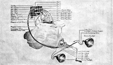 The spark lever should usually be put in about the third or fourth notch of the quadrant (the notched half-circle on which the levers operate). The throttle should usually be opened about five or six notches. A little experience will soon teach you where these levers should be placed for proper starting. Care should be taken not to advance the spark lever too far, as the engine may "back kick."
