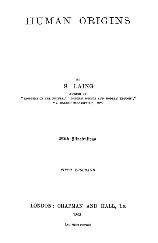 To do this exhaustively would be an encyclopædic task which I do not pretend to accomplish, but I am not without hope that the following chapters, connected as they are by the one leading idea of tracing human origins backward to their source, may assist inquiry, and create an interest in this most interesting of all questions, especially among the young who are striving after knowledge, and the millions who, not having the time and opportunity for reading technical works, feel a desire to keep themselves abreast of modern thought and of the advanced culture of the close of the nineteenth century.
