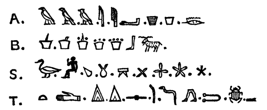 SPECIMEN OF HIEROGLYPHIC ALPHABET. (From Champollion's Egypt.)