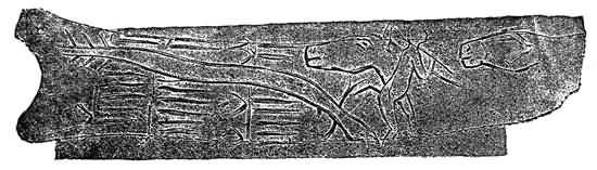 (The oldest inscription in the world, probably 6000 years old. The king conquering an Arabian or Asiatic enemy.)