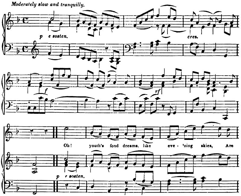 Oh! youth’s fond dreams, like eve ’ning skies,