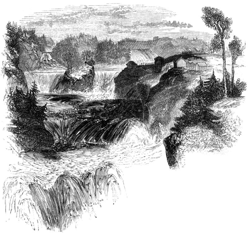 There is great diversity in the length of rivers, the force of their current, and the mass and complexion of their waters; but their peculiar character is obviously dependent upon that of the country in which they are situated. As it is the property of water to follow a descent, and the greatest descent that occurs in its way, the course of a river points out generally the direction in which the land declines, and the degree of the declination determines in part the velocity of its current, for the rapidity of the stream is influenced both by its volume of water and the declivity of its channel. Hence one river often pours its tide into another without causing any perceptible enlargement of its bed, the additional waters being disposed of by the creation of a more rapid current, for large masses of water travel with a swift and powerful impetus over nearly a level surface, upon which smaller rivers would have only a languid flow. In general, the fall of the great streams is much less than what would be supposed from a glance at their currents. The rapid Rhine has only a descent of four feet in a mile between Shaffhausen and Strasburg, and of two feet between the latter place and Schenckenschauts; and the mighty Amazon, whose collision with the tide of the Atlantic is of the most tremendous description, falls but four yards in the last 700 miles of its course, or one-fourth of an inch in 1¼ mile. In one part of its channel the Seine descends one foot in a mile; the Loire, between Pouilly and Briare, one foot in 7,500, and between Briare and Orleans one foot in 13,596; the Ganges, only nine inches; and, for 400 miles from its termination, the Paraguay has but a descent of one thirty-third of an inch in the whole distance. The fall of rivers is very unequally distributed; such, for instance, as the difference of the Rhine below Cologne and above Strasburg. The greatest fall is commonly experienced at their commencement, though there are some striking exceptions to this. The whole descent of the Shannon, from its source in Loch Allen to the sea, a distance of 234 miles, is 146 feet, which is seven inches and a fraction in a mile, but it falls 97 feet in a distance of 15 miles, between Killaloe and Limerick, and occupies the remaining 219 miles in descending 49 feet. When water has once received an impulse by following a descent, the simple pressure of the particles upon each other is sufficient to keep it in motion long after its bed has lost all inclination. The chief effect of the absence of a declivity is a slower movement of the stream, and a more winding course, owing to the aqueous particles being more susceptible of divergence from their original direction by impediments in their path. Hence the tortuous character of the water-courses, chiefly arising from the streams meeting with levels after descending inclined planes, which so slackens their speed that they are easily diverted from a right-onward direction by natural obstacles, to which the force of their current is inferior. The Mæander was famed in classical antiquity for its mazy course, descending from the pastures of Phrygia, with many involutions, into the vine-clad province of the Carians, which it divided from Lydia near a plain properly called the Mæandrian, where the bed was winding in a remarkable degree. From the name of this river we have our word meandering, as applied to erratic streams.