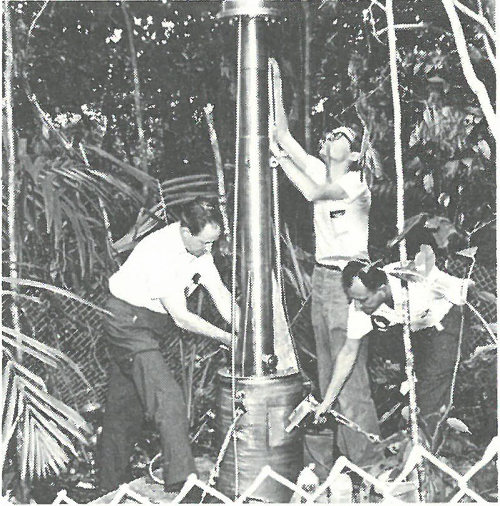 The scientists found in the Bikini ecosystem, in low but perceptible amounts, residual traces of radioactivity deposited by the tests. On certain islands, craters dug by nuclear explosions still gaped in the reefs. The test islands still bore nuclear scars, and in some areas of the lagoon corals and algae had been killed by silt stirred up by the detonations. But Bikini’s life system clearly was in a process of healing. Large islands were covered by regrowths of vegetation; on some, the masses of morning glory, beach magnolia and pandanus were growing so densely that field parties had extreme difficulty cutting paths through them. Bikini Atoll, scientists believed, needed only clearing and cultivation to make it once again suitable for human habitation.