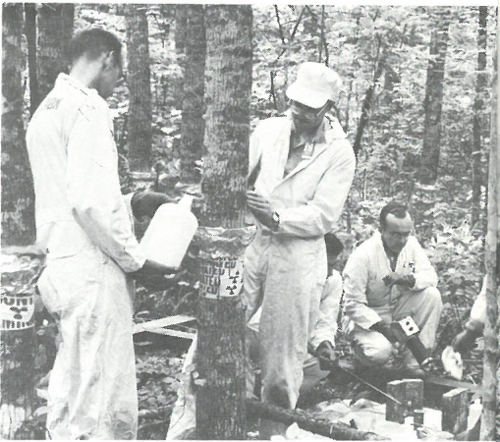 Plant ecologists “tagging” experimental forest plots with radioactive cesium for long-term studies.