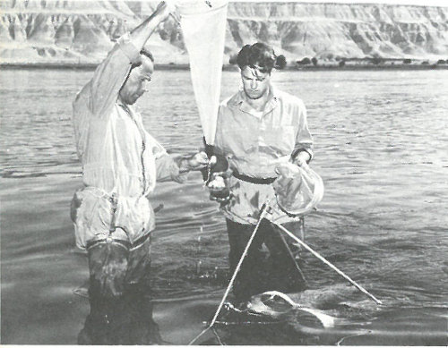 Fisheries biologists studying hatchery fish reared in water containing radioactivity from the Hanford plutonium reactors.